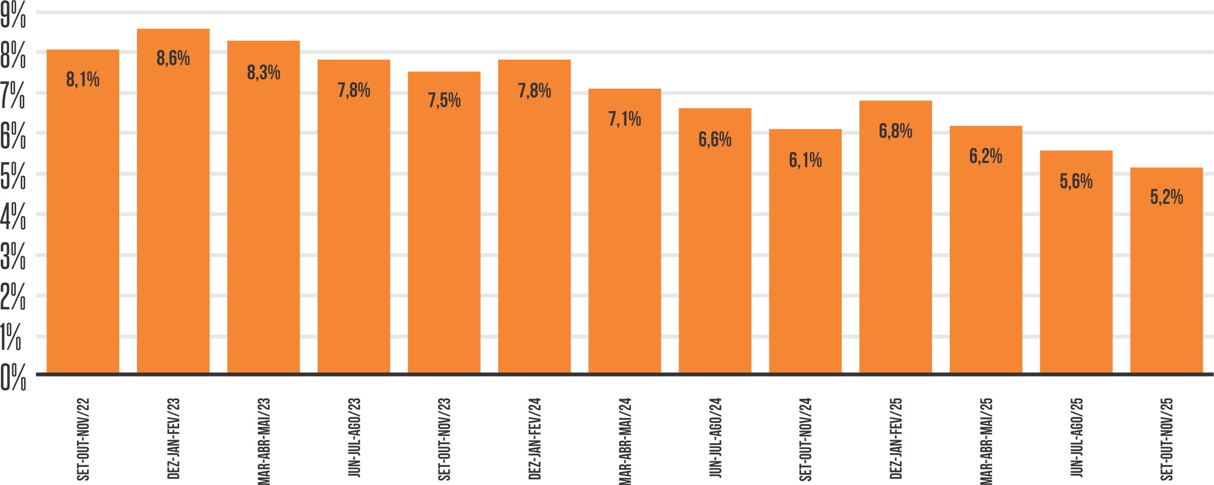 Outro indicador positivo é o nível de ocupação, que chegou a 59% da população em idade de trabalhar, o maior já registrado. A taxa de subutilização caiu para 13,5%, também o menor patamar da série, evidenciando a redução do desemprego oculto e do desalento.