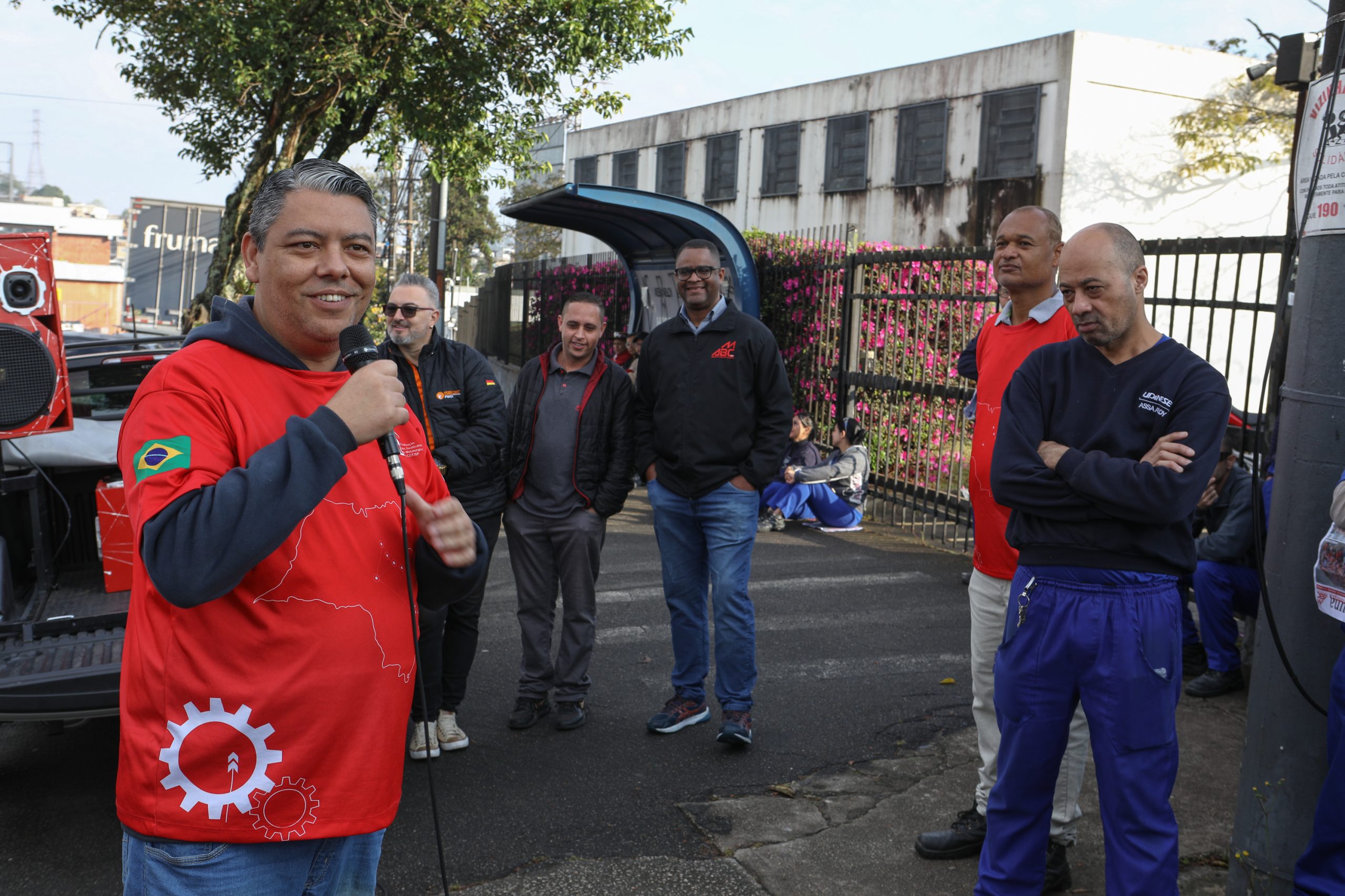“As empresas alegam que o tarifaço está atrapalhando a produção, mas passaram os últimos 12 meses faturando, acumulando riquezas geradas pelos trabalhadores. Agora, quando a categoria precisa da reposição salarial e do aumento real, se negam a discutir o assunto e a atender nossas reivindicações”, Josivan Nunes do Vale, o Cachoeira, CSE na Isringhausen