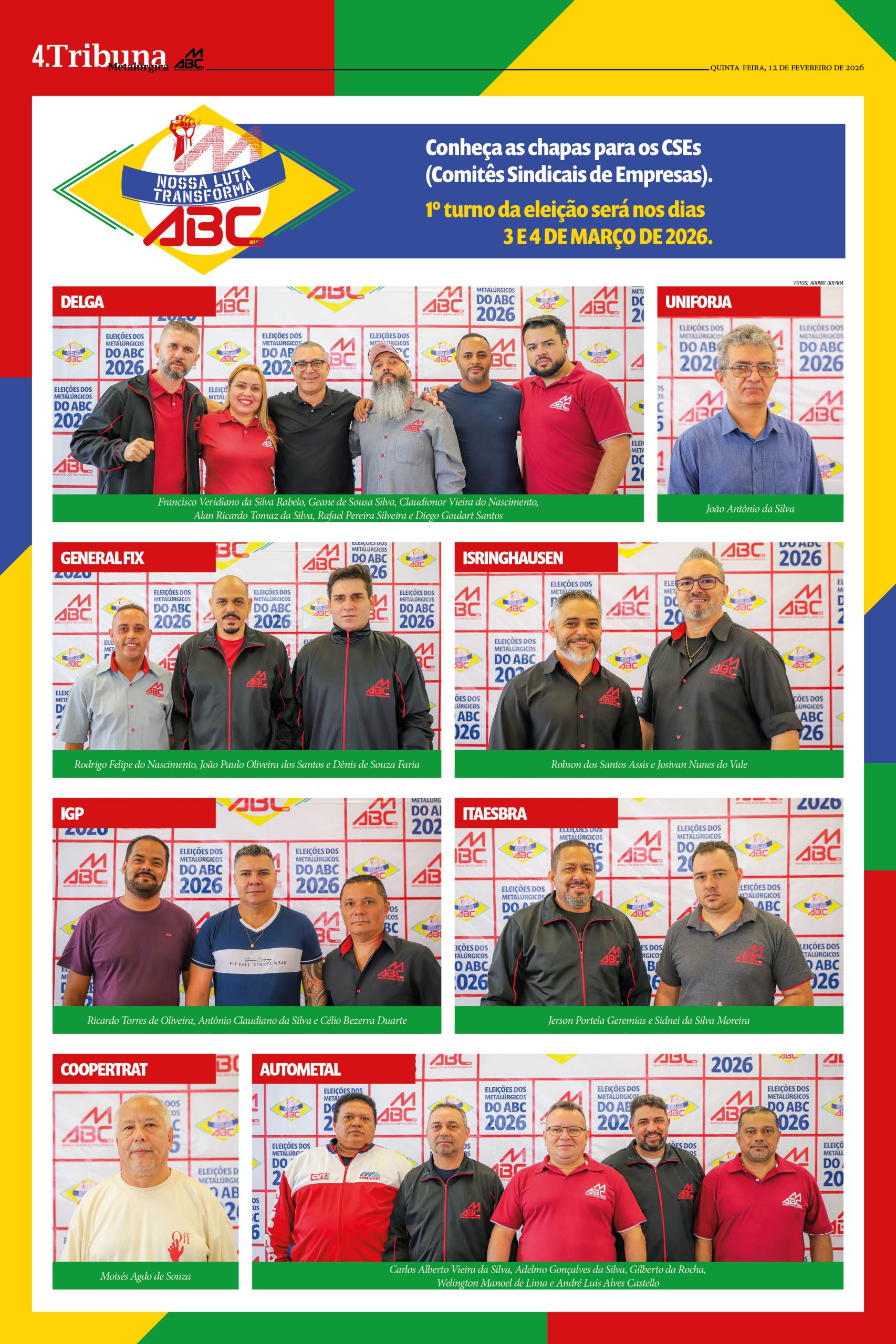 Conheça as chapas para os CSEs (Comitês Sindicais de Empresas). 1º turno da eleição será nos dias 3 E 4 DE MARÇO DE 2026.