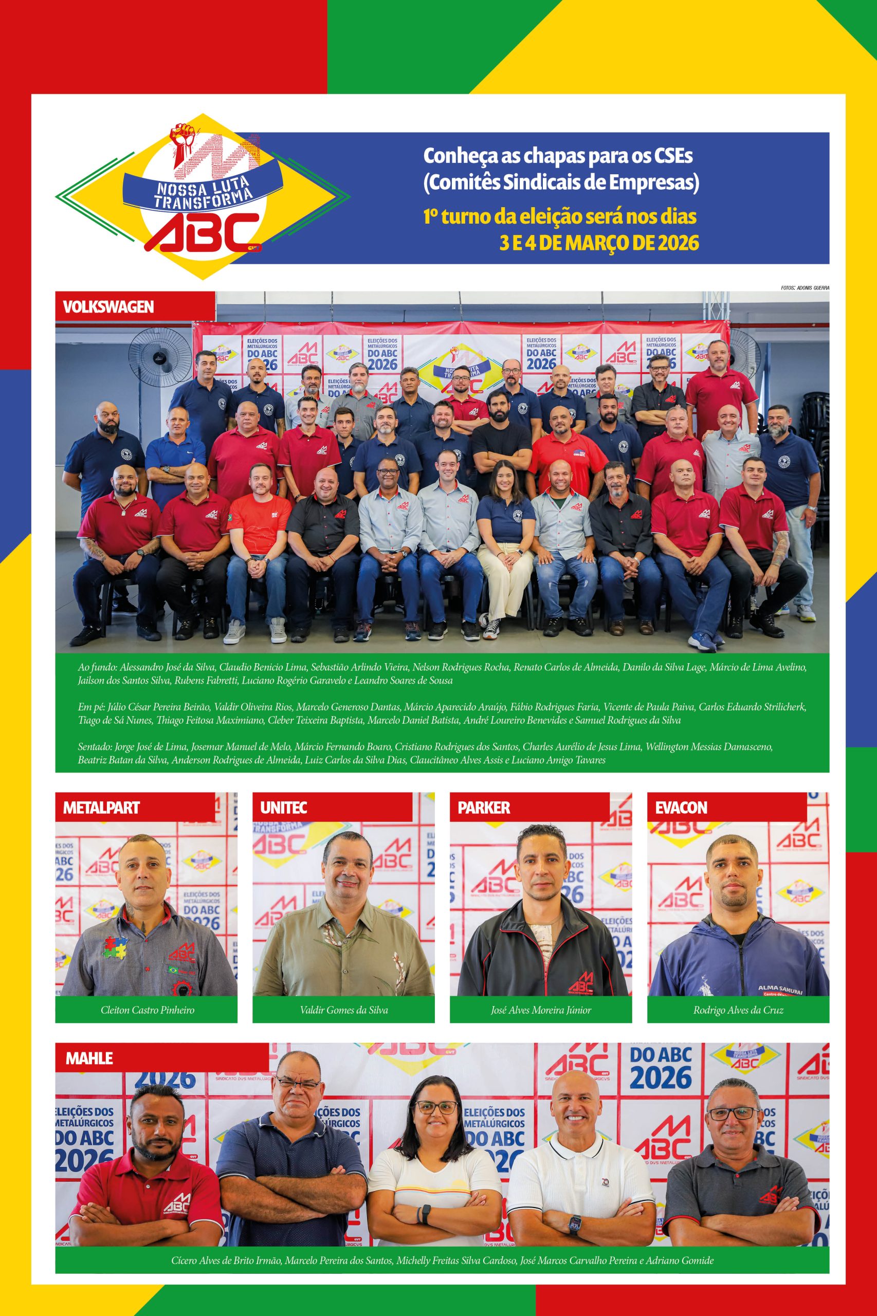 Conheça as chapas para os CSEs (Comitês Sindicais de Empresas) 1º turno da eleição será nos dias 3 E 4 DE MARÇO DE 2026