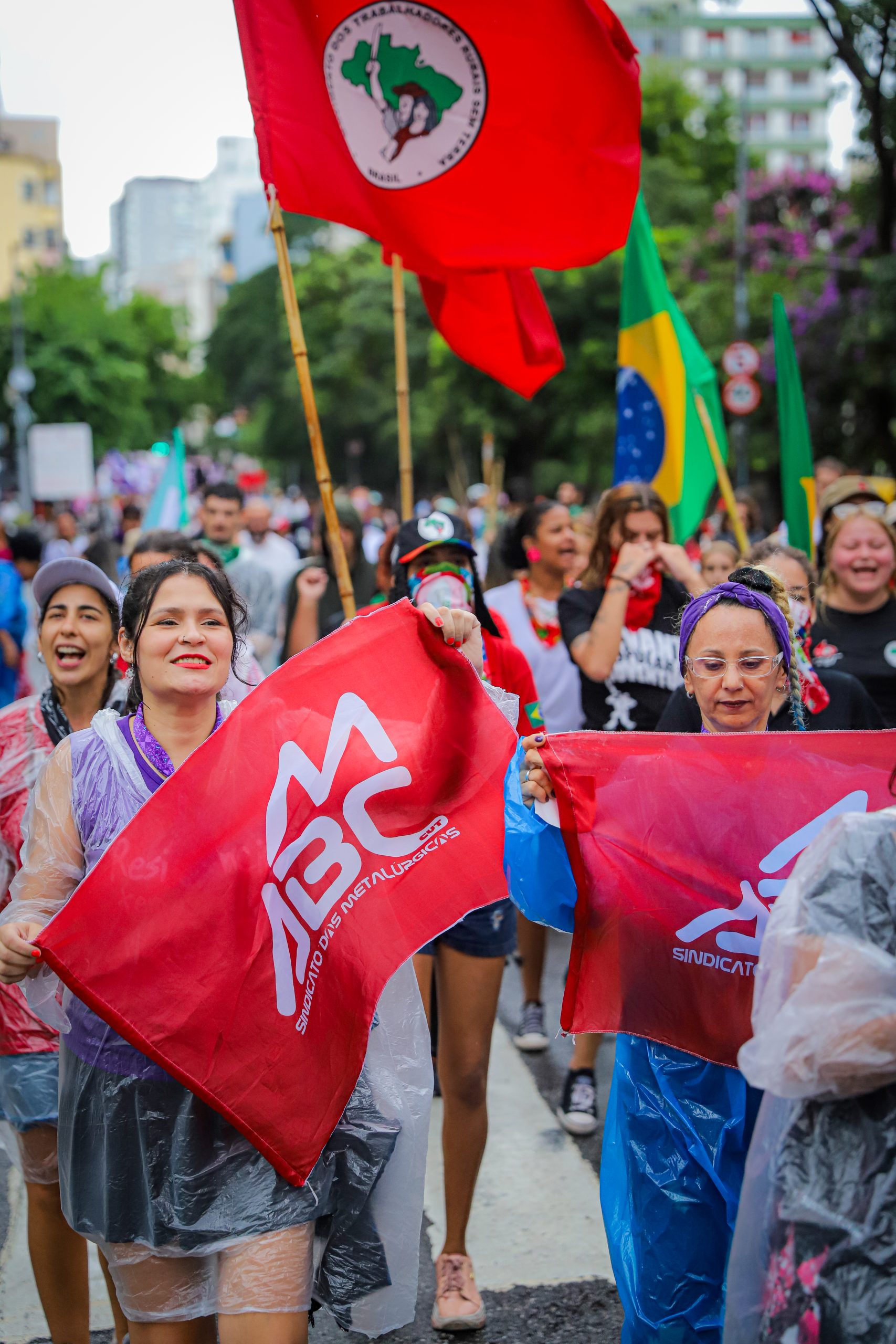 Nem o temporal que atingiu a capital paulista no último domingo, 8 de março, foi capaz de desmobilizar o compromisso feminino com a vida e a dignidade. Munidas de uma determinação inabalável, centenas de manifestantes ocuparam a Avenida Paulista no Dia Internacional da Mulher. O ato, que contou com a presença do Sindicato, integrou uma mobilização nacional para denunciar a violência de gênero, exigir orçamento público para políticas de proteção e cobrar representatividade nos espaços de poder.