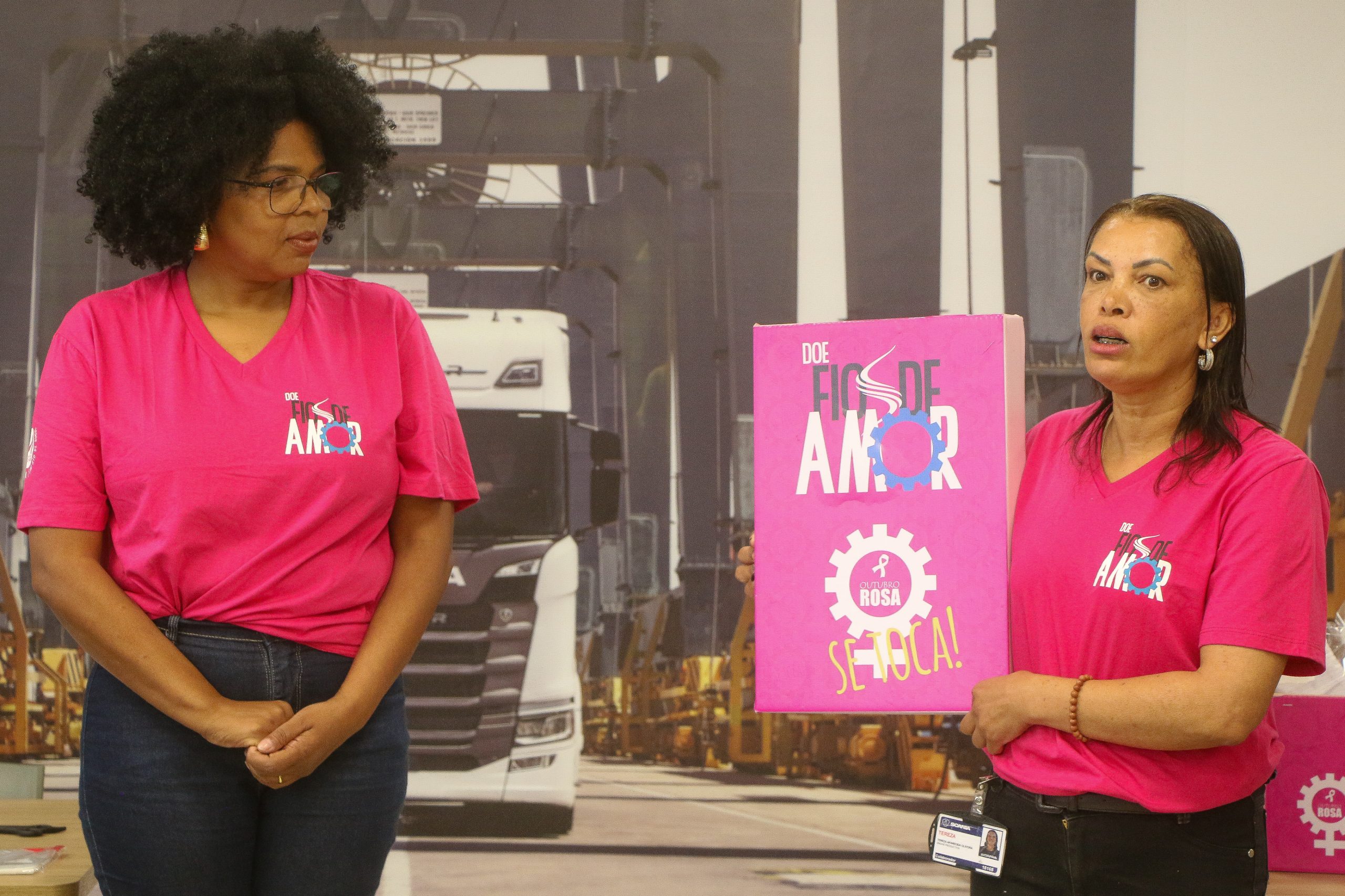 As trabalhadoras na Scania, em São Bernardo, participaram na manhã de ontem de uma roda de conversa promovida pela Comissão das Metalúrgicas do ABC em alusão ao Outubro Rosa. O encontro foi um convite à reflexão e ao cuidado, abordando a importância da prevenção e diagnóstico precoce do câncer de mama, além de renovar o compromisso coletivo com a solidariedade por meio da campanha Doe Fios de Amor, que transforma doações de cabelo em perucas para mulheres em tratamento oncológico.